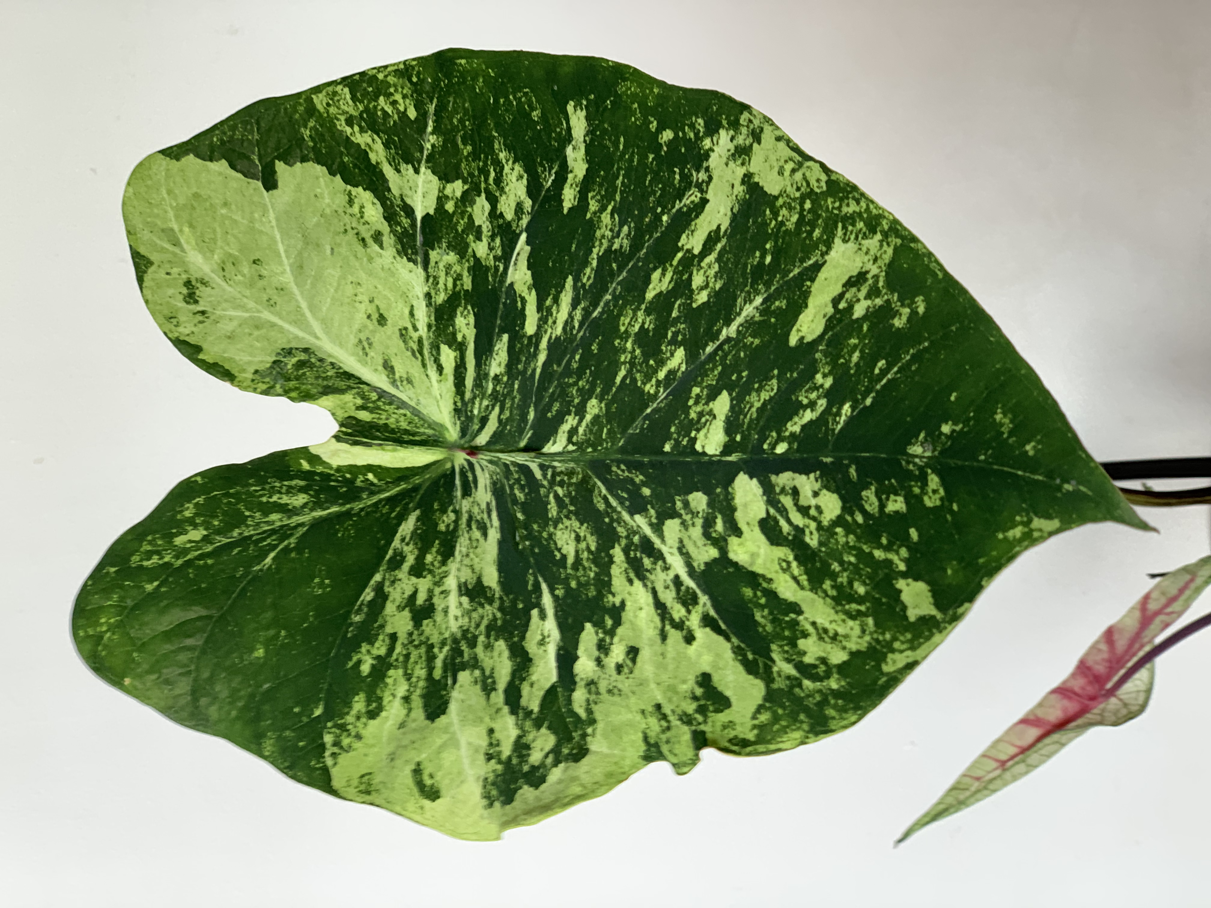 Le caladium lance leaf, est quand à lui, plus petit, plus compact et présente une feuille en forme de « lance », son pétiole est plus tassé et attaché au bord du limbe, les lobes intermédiaires sont plus étroits voir inexistants.